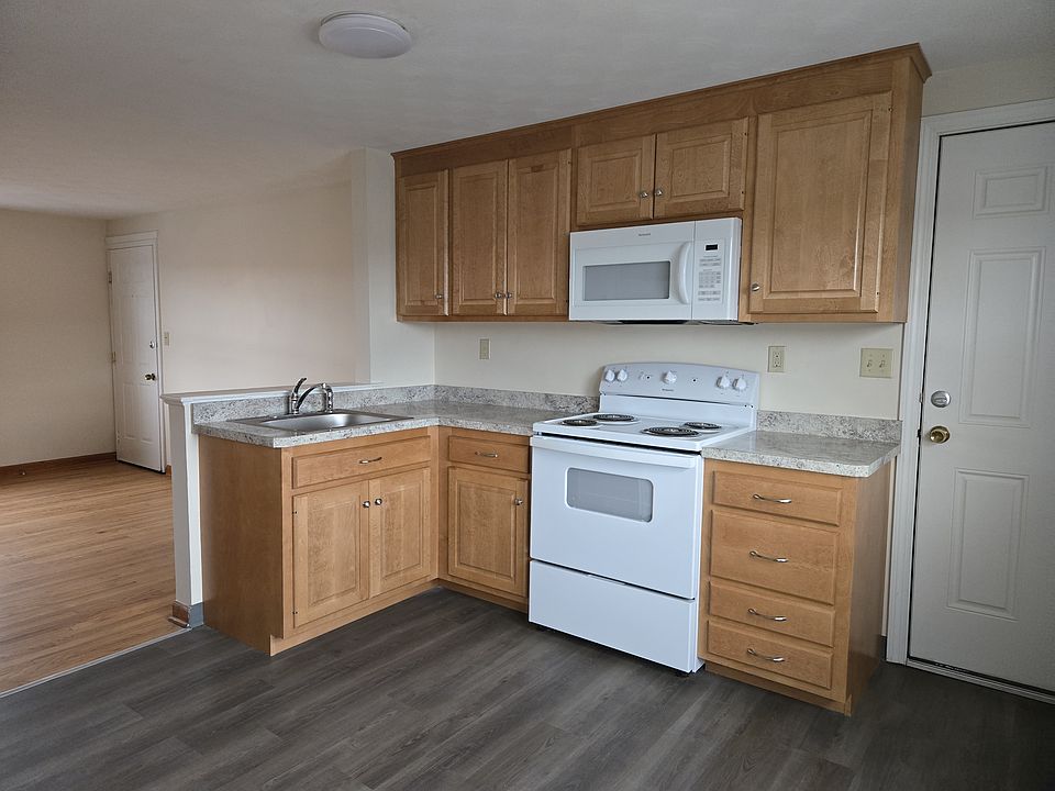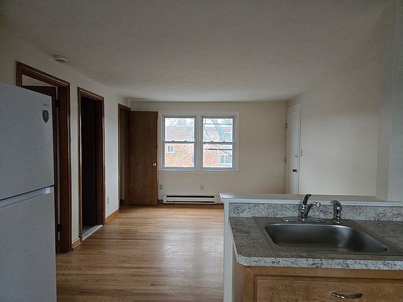 Renovated one bedroom apartment on the third floor. Kitchen cabinets are brand new as well as the bathroom vanity and Tile in the tub! Kitchen floor is also new, while the reminder of the apartment has hardwood flooring. The building has a shared- coin operated laundry room. Open floor plan between the eat in kitchen and the living room. Lots of closet space including a coat closet, linen closet, and a bedroom closet the length of the bedroom. The apartment comes with one parking spot. You may have additional parking spots for an additiona $50 a month. Tenant is responsible for the electricity (heat and hot water are electric) The landlord pays for everything else (water, landscaping, snow removal, garbage disposal, etc.). Cats are allowed with an additional security of $500 and a $25 monthly pet rent.