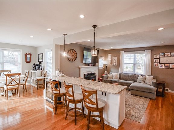 Welcome to this beautifully renovated Cape-style home, where comfort meets modern elegance. Step into the inviting living room featuring a charming fireplace, perfect for cozy evenings. The stunning new designer kitchen offers granite countertops, a breakfast bar, and stainless steel appliances, opening to a bright dining room with a slider that leads to a spacious deck and new patio—ideal for entertaining or relaxing outdoors. The first floor also includes a stylishly updated tile bathroom and two inviting bedrooms, while the second floor provides two additional, sunlit bedrooms. Recent upgrades include new siding, roof, front wall, walkway, patio, A/C, furnace, oil tank, electrical, kitchen, bathroom, and fresh paint throughout. A true move-in-ready gem blending timeless character with modern updates! Open House Saturday 11/15 and Sunday 11/16 12-1:30pm! Send your buyers!