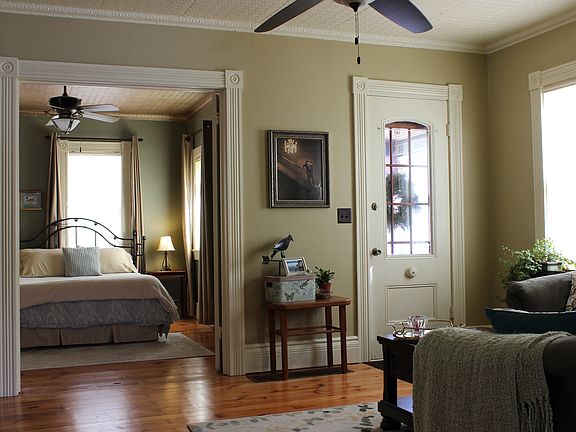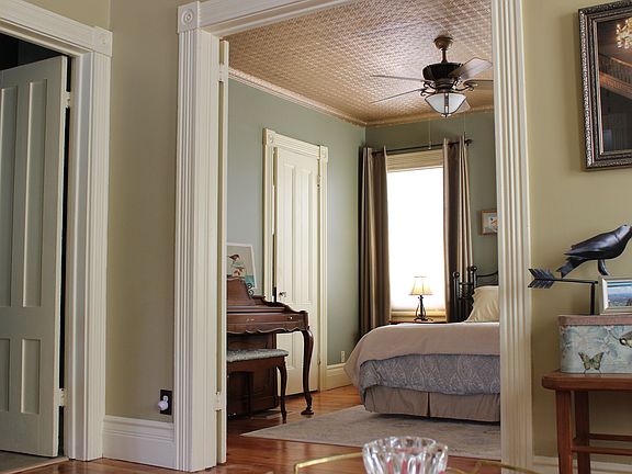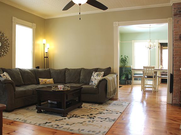 Nestled between the South Wedge and Highland Park, this beautiful 1880s Folk Victorian is full of character and charm. An open floorplan and 9 ft. ceilings give this home a spacious, modern feel, but the carefully preserved historical details maintain the rich character of its 19th century heritage. Details include 2 porches, stained glass, tin ceilings, exposed brick, double doors, decorative moldings, and built-ins. The house is very versatile with options for a sizable master bedroom on first or second floor. Many large windows let in lots of sunshine throughout the day and provide great views of the gorgeous, deep, fully-fenced backyard. Superior landscaping includes a 1,200 gallon Koi pond with waterfalls and bridge. Low maintenance gardens feature woodland plants, hostas, ferns, and evergreen shrubs. An 8x10 shed is available to store tools and bikes, while another shed set further back houses a flock of hens. Enjoy it all from the roomy deck, perfect for hosting and relaxing.