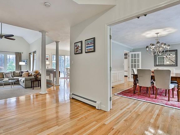 Home at last! Located at the end of a cul-de-sac in one of Boxfords most desirable neighborhoods. Enjoy the open floor plan with a bright foyer connecting the cathedral ceiling family room with sweeping views of the private backyard. Delight continues as you enter the large kitchen with all the amenities. Take pleasure in the spacious first floor master bedroom with gas fireplace and recently updated master bath that includes a tiled shower, modern tub and heated floor. The roomy dining room and office round out first-floor living. A large bonus room over the garage offers space for a playroom, game room or media room. Not to be missed are the upstairs 3 generous sized bedrooms, one of which is complete with en-suite. The screened in porch with natural wood interior opens up to the manicured yard that is perfect for entertaining, showcasing a large deck, in-ground heated gunite swimming pool and spa. The home is set on over five acres with direct access to BTA conservation land.