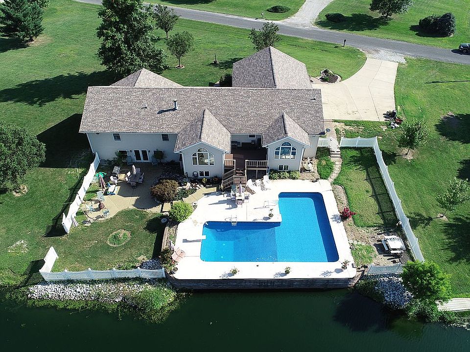 Call 618-304-7288 for more info and request a private showing. Large Lakefront Home 2672sq ft main level on 2 acre lot, with huge true L shaped inground pool New Liner 2018. New roof 2015. 4 1/2 acre lake comes right up to the edge of the pool. 4 Bedrooms, 3 full baths, 1 3/4 bath, Main floor laundry with built in ironing center, Whole house attic fan and Geo-Thermal HVAC system. Central vac system, Full walkout basement leads out to nice patio with garden pond that has a waterfall. Deck access from the dining area and the sun room with steps down to the pool area. Call 618-304-7288 For More Info and to request a private showing.