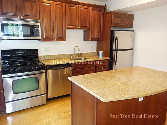 Beautiful and sunny two bedroom condominium with gleaming hardwood floors, spacious bedrooms, and brand-new stainless steel appliances. Kitchen includes dishwasher, disposal, and built-in microwave. Plenty of storage space in kitchen cabinets and island. Modern ceramic tile bath.