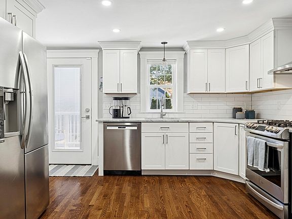 Welcome to this charming Cape Cod style home, where classic charm meets modern comfort in an inviting & warm setting. Located just steps from Hoover School and downtown Melrose, this home offers 3 bedrooms, one w/ custom Murphy Bed, and a beautifully renovated bathroom with soaker tub and separate tiled shower upstairs, plus a convenient half bath on the main floor. The spacious primary bedroom features built-ins, California closets and tons of natural light. The stunning renovated white kitchen features quartzite countertops, stainless steel appliances, and shaker cabinets, leading to a composite deck overlooking a serene yard. Cozy evenings await in the fireplace living room with hardwood flooring, while the dining room adds character with built-ins. Additional amenities include a one-car garage, newer central air conditioning and Heat, + newer windows, insulation, roof and MORE. With its prime location & meticulous maintenance, this home is ready to welcome its next lucky owner!
