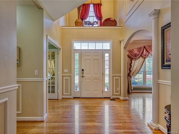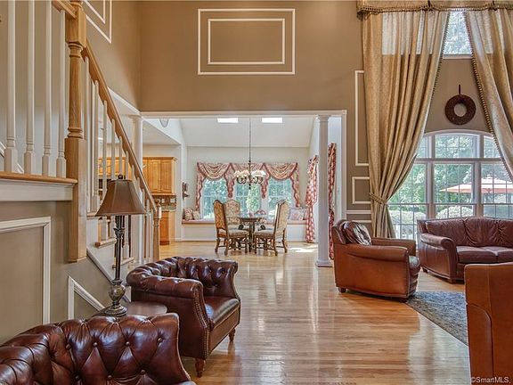 Are you ready to own THE premier residence in Ellington? Custom designed and set on a professionally landscaped acre in an ideal neighborhood, you'lll want for nothing at this address!. The inspired architecture is complemented by sweeping lawn, specimen plantings and intricate paver walkway leading to the front entrance. Step through the foyer in awe and view the light filled open floor-plan. An ideal mix of distinct rooms and comfortable space is complemented by master workmanship and exquisite details. Picture frame molding, French doors, gleaming hardwood, decorative columns, arched framework, the list goes on. First floor boasts formal music and dining rooms, f/placed living room with soaring ceiling and walls of windows. The adjacent kitchen features Maple cabinetry, glass mullions, granite counters, SS appliances, centre isle & breakfast room all opening to outside patio through French doors -- ideal for entertaining! An open stairwell leads to second floor balcony, bedrooms and laundry/utility room. The master exudes luxury w/ tray ceiling, sitting area, and en suite with jetted tub, glassed enclosed shower and private commode area. Home entertainment and relaxation are more important than ever so enjoy the lower level with dry bar, in home theatre and office. The private yard offers two patios, stone paver fire-pit, above ground pool and expansive level area for recreation. This turn key meticulously maintained home is ready for your immediate enjoyment.