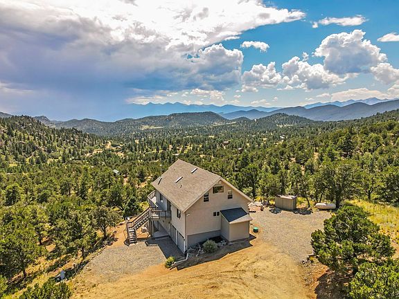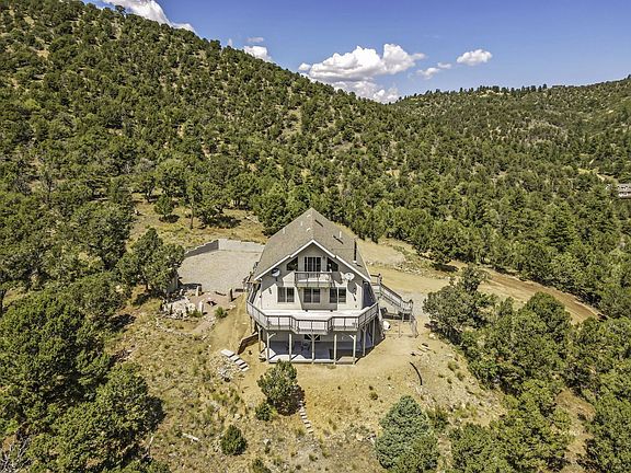 Gorgeous Mountain Property! This stunning mountain home offers awe-inspiring views that stretch beyond your wildest dreams. Nestled amongst the rugged landscape, this retreat features three bedrooms and 2.5 baths including a large master loft. The two spacious bedrooms on the main level are perfect for family and guests. A wood stove on the main floor adds warmth and comfort to the inviting atmosphere, while the composite decks on the main level and the loft of the house showcase breathtaking views of the surrounding wilderness and are perfect for entertaining, relaxation, and soaking up the mountain air. The pump installation report shows that the well has an impressive flow rate at 10 gallons per minute. Additionally, a 1700 gallon cistern adds an extra layer of water security. The finished basement offers an additional half bath, a fireplace fueled by propane and regulated by a thermostat, and a small bar with an additional refrigerator. This would make a great game room, family room, craft room, or whatever your mind can dream up. The exterior is well maintained. The property is covered in trees and shrubs and the home sits atop a small hilltop providing ample privacy and tremendous views.