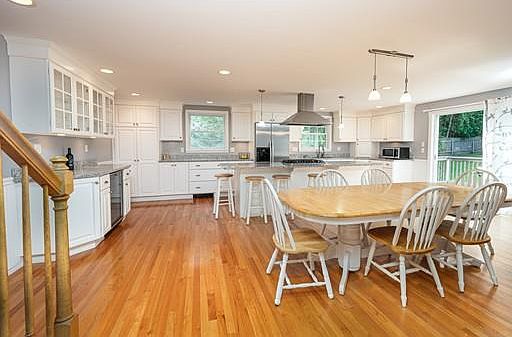 Updates and more updates here in this meticulously maintained property with a cooking enthusiasts dream kitchen. An abundance of cabinet storage, built in wine fridge, gorgeous granite counters and a sprawling 10' island with Bosc gas stove. Open floor plan off the kitchen with just a step down to the fireplaced living room and spacious family room. Slider to the back composite deck and park-like, fenced in back yard makes for easy entertaining and family time. First floor master suite with double vanity master bath, walk in & 2 additional closets make storage a breeze. Also on the first floor is the update 1/2 bath and main level laundry. 2nd floor offers 2 additional generous sized bedrooms easily can accommodate multiple beds or space for study area and updated full bath. Looking for more space check out the great finished lower level with 2 additional rooms and a mudroom with access to the garage. Easy commute to highways. Don't miss the opportunity to view this home.