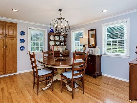 Lovingly maintained & updated garrison colonial showcases fantastic flow & generous living spaces. Front entry introduces renovated & open dining room/kitchen/family room space. Remodeled kitchen highlights tile flooring, stainless appliances including gas range, accent center island, tiled backsplash and quartz & granite countertops. Dining room has beautiful oak wood floors w/darker stained accent border- flooring is mirrored in family room w/its brick fireplace, custom built-in bookcases & bay window overlooking private backyard. Lot abuts conservation land on 2 sides for ultimate privacy & peaceful environment. Front to back living room provides another spot to relax. Remodeled powder room has tile flooring, painted wood vanity w/quartz top & convenient laundry closet. 2nd floor features renovated full bath plus 4 bedrooms w/hardwood floors including primary suite w/new 3/4 bath. Freshly painted finished lower level has new LVP flooring, recessed lights & chairrail w/wood wainscot.