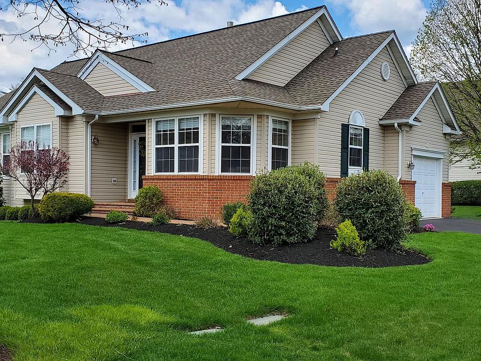 Welcome to this stunning Chanticleer Federal layout that was the original upgraded model. Enjoy entering the home by way of the front paver walkway beautifully landscaped with native plants. This home offers one-floor living at its finest. Warm hardwood floors run throughout the sunny kitchen, cozy dining, spacious living room, and hallway. The primary bedroom has a large walk-in closet as well as an en-suite bath. The second bedroom comes complete with built-in shelving and desk, providing an option for an at-home office. The large kitchen has loads of cabinet space, granite countertops, and an eat-in breakfast area. The laundry and a full bath round out this floor. Then there's the fully finished basement with a half-bath. Perfect for additional living space, overnight guests, crafts, or storage. Sky's the limit. Entertaining is a breeze in this home. Flow from the kitchen to the dining and living right on out to the back paver patio for additional space. Plus the amenities at Flower's Mill can't be beat with a recently updated clubhouse, indoor pool, outdoor pool, bocce, tennis courts, billiards, pickle ball courts, walking trails, and lots more.