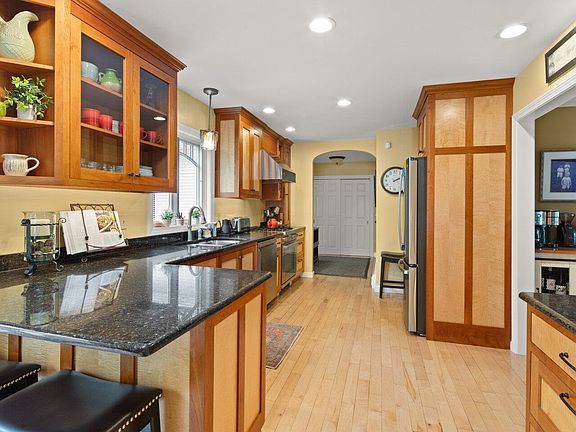 Perfection Awaits. There is so much to love about this beautiful home in the Meadow’s Edge neighborhood in Essex. This meticulously cared for 4 bedroom, 4 bath home is filled with an abundance of light. The wonderful front porch invites you in. The first floor showcases the living room, formal dining room, charming fire-lit family room, 3 sided fireplace, fabulous chef’s kitchen, bright breakfast area, custom cabinets, granite counters and in-law suite. You’ll find seamless access to the outdoor screened in porch, deck, patio and fenced-in pool area from the kitchen area. Upstairs you’ll find the primary bedroom and bath along with 3 additional bedrooms, ample closets and a shared bath. The partially finished lower level presents fabulous space to fit all of your lifestyle needs. The oversized, insulated garage opens into the large mudroom offering access to the in-law suite and full bath. Outside the landscaping is phenomenal featuring gorgeous perennials, shrubs, mature trees and raised beds. The huge shed offers storage for all of your outdoor equipment. Morning sunlight fills a portion of the home and evenings offer spectacular sunsets from the screened-in porch, pool, deck and front of the home. Move right in and make it your own. Convenient to everywhere - trails, The Essex Experience, The Links at Lang Farm, The Essex Resort and Spa, eateries and more!