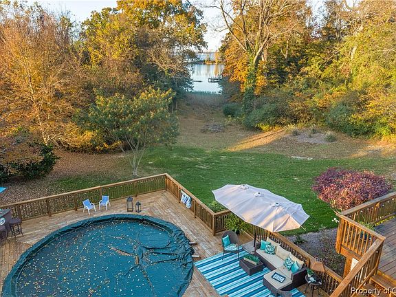 Charming home with beautiful views of Whiting Creek, off the Rappahannock River. You notice the attention paid to every detail, from the moment you enter the home. The home offers 10' ceilings, custom trim throughout, hardwood floors, granite countertops, stainless appliances, farmhouse sink, central vacuum, tankless water heater, remote control awning, pool, hot tub, gutter guards and large decks (overlooking the water). The main level is comprised of a large living/great room with fireplace, a large kitchen/ dining area with an island and wet bar, a study, a large primary suite with ensuite bath (jetted tub and shower) and walk-in closet, 2 guest bedrooms, guest bathroom, half bath and laundry area. The walkout basement is partially finished and can be accessed from the inside or outside of the home. The basement is comprised of a large family room, large bedroom with ensuite bath, and additional areas for storage, which could be converted to living space. Most of the home offers water views. Two car attached garage. The community has 2 water access areas. Conveniently located close to marinas, restaurants and shopping. Original owner!