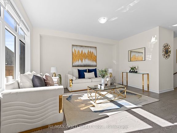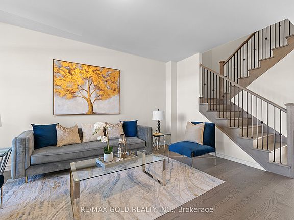 Welcome to this beautiful 4-bedroom townhouse, thoughtfully designed to combine style, comfort, and convenience, all while being filled with natural light throughout. The inviting foyer with elegant ceramic flooring leads into a modern open-concept layout where the sleek kitchen, complete with a large center island, flows seamlessly into the spacious living and dining area, highlighted by gleaming hardwood floors and expansive windows that create a warm and bright atmosphere. Upstairs, you'll find four generously sized bedrooms, each with large windows and ample closet space, including the impressive primary retreat featuring a walk-in closet and a spa-like 5-piece en-suite with a glass shower and a relaxing soaker tub. Everyday living is made effortless with the bonus of a second-floor laundry, while direct access from the garage to the home adds extra convenience. Perfectly located just minutes from schools, parks, shops, restaurants, and Hwy 404, this home is the ideal blend of modern living and family-friendly charm.