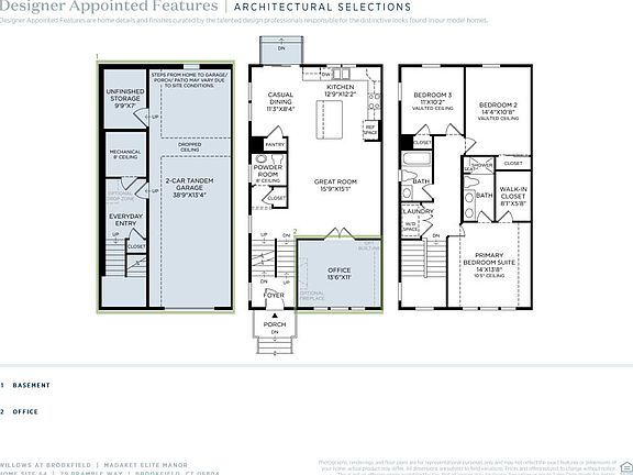 A soaring two-story foyer and inviting stairs lead to the Caufield's bright living level, complete with a spacious great room, dining room, and a casual dining area with desirable rear yard access. The well-appointed kitchen offers a generous center island with breakfast bar, wraparound counter and cabinet space, and a roomy pantry. Enhancing the serene primary bedroom suite is an ample walk-in closet and a gracious primary bath with a dual-sink vanity and a luxe shower with seat. Disclaimer: Photos are images only and should not be relied upon to confirm applicable features.