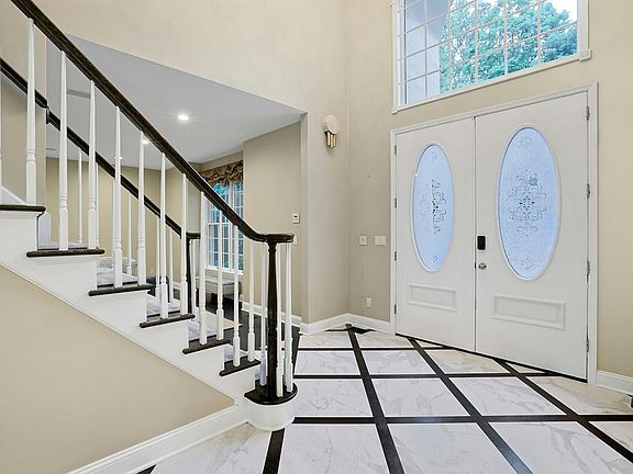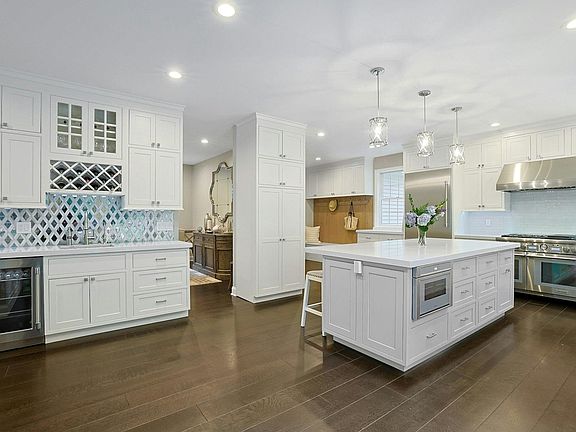 Welcome to this outstanding Colonial where no detail has been overlooked. Drive up and be greeted by a circular driveway. Enter into the double story foyer with wood inlay floors and you will immediately feel a sense of space and light. At the heart of this home is the state of the art kitchen that is as functional as it is beautiful featuring sleek quartz countertops, a generous quartz island that seats four comfortably, custom cabinetry and top tier Thermador stainless steel appliances. Whether you're preparing everyday meals or hosting a gathering, the built in wet bar makes entertaining effortless. The kitchen opens up into the stylish great room, grounded by quarter sawn oak hardwood floors and centered around a cozy fireplace-the perfect place to unwind or host friends.Enjoy easy access to the outdoors from both the kitchen and great room, where the deck and patio extend your living space and entertaining areas. Formal dining room and living room, powder room and office complete the first floor. Upstairs retreat to the primary suite complete with a luxurious bath featuring an Ultrabain bathtub, shower and double vanity. Tremendous walk in closet, hardwood floors. As you go down the hall you traverse the bridge that overlooks the great room. 3 more bedrooms, hall bath featuring the laundry. Are you a bartender? welcome to the lower level where you can sharpen your bartending skills with your own bar. Get ready to invite your friends over, spacious great room here ideal for a media room, gym or playing pool. Full bath as well. Plenty of storage. Easy access to the side yard. Get ready to be wowed with your own summer retreat in the backyard featuring a gunite pool with slide, hot tub, Koi pond, garden and chicken coop. It is a true fantasy. This is more than just a beautiful home. It is a lifestyle. Don't miss the chance to own a turnkey property that balances design, comfort and functionality in every room.