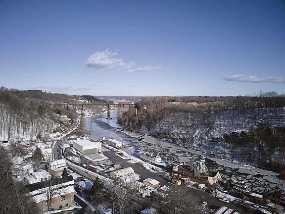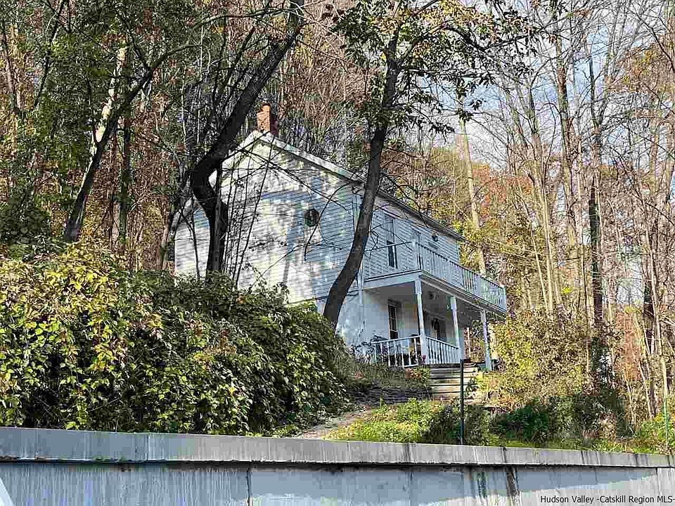 Perfectly perched high on a hill on a half acre sits this 1890 two story cottage in one of Kingston's most authentic and interesting neighborhoods. Overlooking Feeney's: a 2nd generation industrial shipyard circa 1904 on the meandering Rondout creek. Quiet location on Burnett St is lightly traveled with only 8 homes; this being the next to last. Less than 1.5 miles to Kingston's walkable restaurant scene, charming shops and boat laden waterfront that meets with the Hudson River. First floor has open plan with hardwood floors, kitchen and full bath. A propane stove in the brick fireplace adds to the coziness. On the second story one walks into a loft like room with 9 foot ceilings and great light. Off that is the bedroom and another small room that functions as a closet. Sitting on the second story porch is like being transported back in time. This was originally built in the mid-19 century for a stone cutter's house; employee of Fitch Bluestone down on the creek. This is a unique and delightful property.