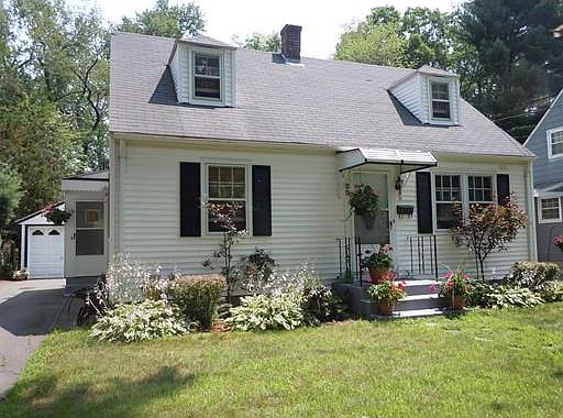 Great 3 bedroom Cape in E Forest Park with super deep private yard to entertain, play volleyball, etc. New stainless steel kitchen appliances incl 5 burner stove, oak cabs, marble flr & mudroom. Open stairway between living & dining rm & M bedroom all w/beaut hardwood floors. Baths have new cherry vanities & ceramic tile floors. New gas heating (2011) with all provisions ready for future central air. New gas hot water tank. Detached garage and near numerous amenities & East Longmeadow. An adorable home!