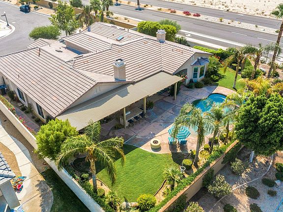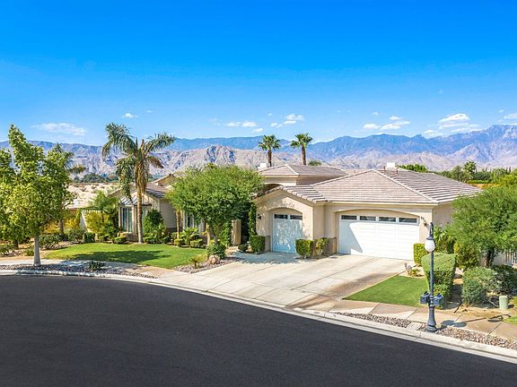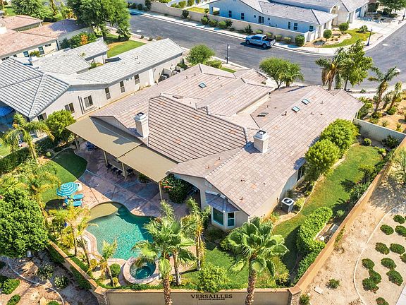 Welcome to Versailles in Rancho Mirage. The well manicured front yard, walkway and 8Ft double door entry welcomes into this beautiful home. As you enter you'll appreciate the open floor plan as you make your way from the foyer into the living room, the formal dining and around into the kitchen, dining and family room areas. You will appreciate the beautiful Travertine flooring throughout, 10ft. ceilings, multiple skylights, high glass doors and windows that provide lots of natural lighting and views of our beautiful mountains. A custom built floor to ceiling entertainment center and fireplace also adorn the family room. On the opposite side of the home, the master bedroom with its large WEST facing views, spacious bathroom, walk in closet and yet more room to set up a study, retreat or work out area. There are two other bedrooms which share a bathroom and another master suite at the front of the home with its own full bath and spacious walk in closet. The meticulously maintained rear yard is perfect for family gatherings and entertainment or just for your own enjoyment of the pebble tech pool/spa and the most stunning views of the San Jacinto and Santa Rosa mountains!This community is conveniently located approx. 2.5 mi. near Eisenhower Medical, as well as shopping, dining, places of worship and easy access to main West Valley thoroughfares and the I10 FWY.