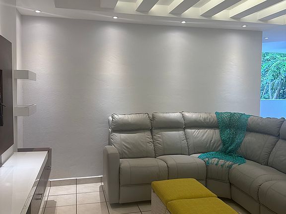 Spacious and contemporary Entry Level apartment (no stairs). Very Safe gated complex; family, elderly, couple and solo friendly. 3 bedrooms and 2 bathrooms, all with blackouts and wallpacks, master with inverter wallpack. Master bedroom has a spacious walk-in closet, en-suite bath and smart TV. Master and second bedroom fully furnished. Both bathrooms renovated. Family/Dining has been remodeled with Inverter A/C, false ceiling and dimmable lights for a comfortable rest in the sectional recliner sofa and smart TV. Includes TV Unit, TV, Recliner Sofa, Ottomans. Dining includes dining table and 4 chairs. Inverter 36BTU that covers the kitchen also. Kitchen includes Appliances such as Stove (with oven), French doors fridge, microwave, coffee maker and over the counter oven. Kitchen has a cupboard. Spacious balcony. 2 parkings back 2 back (almost 10 steps from the door of the apartment). Closet with front load washer & dryer. Lining Closet with tank water heater. Common Areas: Gated Access (Security Guard and Tele Entry), Pool, Gazebo for events and basketball court and kids playground. Very relaxing area, nearby everything. Administration allows EcoFlow battery, no gas generators. Options for Internet: Liberty (regular cable) and Optico Fiber (fiber optic). Utilities are paid by the tenant, but water is paid under the landlord's account. Good conduct certificate required and one reference contact from previous landlord.