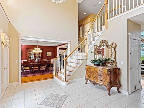 Exceptional 5 Bedroom, 5.5 Bath Colonial w/3 car Garage, set on BLUFF LOT in coveted CAMELOT HILL! THE VIEW, including sunsets, is absolutely breathtaking whether you are inside or out! Impressive Two-Story Foyer will greet you & an amazing Great Room, which is the focal point of the home, w/palatial windows & oversized fireplace, is a fabulous place to entertain. Other 1st floor features include home office, laundry room/mudroom area, formal dining & living room w/2nd fireplace! Amenities include hardwood throughout most of the home, all bedrms w/private bath or Jack & Jill Bath & either walk-in closets or double closets, wired for generator, C/Air & MORE. The expansive 3rd level offers 2 more finished rooms, full bath & studio (mostly finished). In the basement you will find an exercise room/dance studio & workshop room. The spacious backyard oasis offers heated, in-ground pool, gazebo, shed for storage all on over an Acre, a great place to watch the fireworks! A MUST SEE!