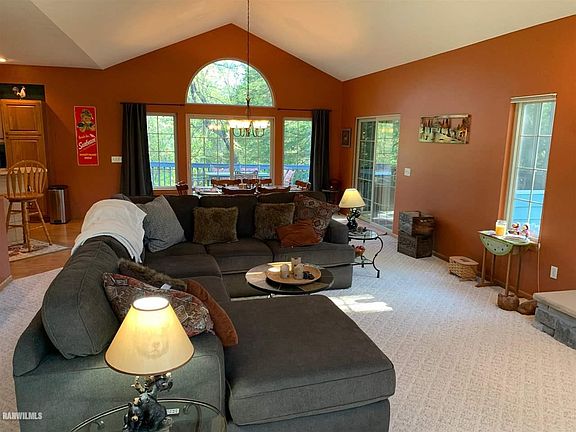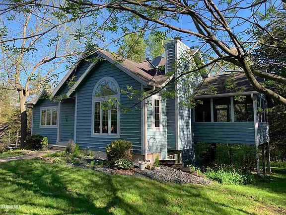 Nicely decorated 3-bedroom/3.5-bath contemporary home situated on 0.51 acres. The main floor offers open concept living with vaulted ceilings with half-moon windows at the front and back. This home features a gas-log fireplace (with a newly updated floor-to-ceiling stone front), a nicely appointed kitchen with an eat-at-counter, and a large dining area with direct access to the deck and screened-in porch. The main-floor master bedroom includes a nicely designed tray ceiling, spacious closet, and large private bath complete with a whirlpool tub, separate shower, double vanity sinks, and linen closet. The walk-out lower level is an entertainment spot with a large family room with a wet bar, including a mini-refrigerator. This level also features a laundry room and two nicely sized bedrooms, each with an attached bath. A patio is directly off the lower-level family room leading out to the quiet back yard and wooded area. This home is being sold furnished with furnishings to be conveyed on a separate bill of sale at closing. The interior was painted, and the exterior stained in 2020. The furnace was replaced in 2015.