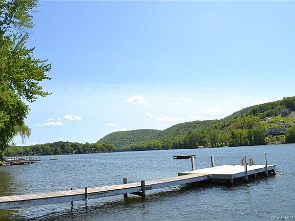 This lovely lake home is just steps away from the beach in desirable Candlewood Springs. Featuring great room with cherry floors, beams, vaulted ceilings, French doors, wood stove, walls of glass overlooking huge, private patio surrounded by perennial gardens. Home features kitchen with plenty of cabinets, granite, ss appliances and mini wall fireplace; updated 3 full baths; 2 fireplaces; hardwood floors; laundry room; private backyard; and heated garage. Teak decking overlooks views of Candlewood Lake. The one time buy in fee is $1,500.