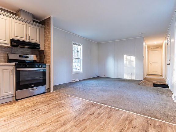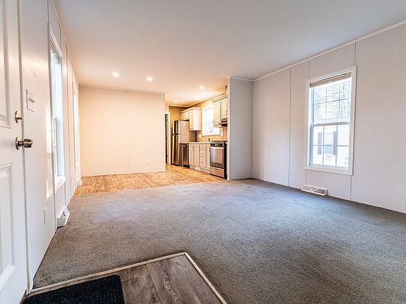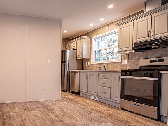 PRICE ADJUSTMENT! This 2022 single-wide mobile home is on a wide lot with beautiful established tree growth. It boasts a large primary bedroom in the rear of the home with a large walk in closet and a private full bath. Your king size bed will fit perfectly, and there's a small safe securely located in the closet. All laundry and kitchen appliances convey with the home; the spacious kitchen and adjacent dining area make mealtime easy and convenient in this open-concept living area in on-trend gray tones.