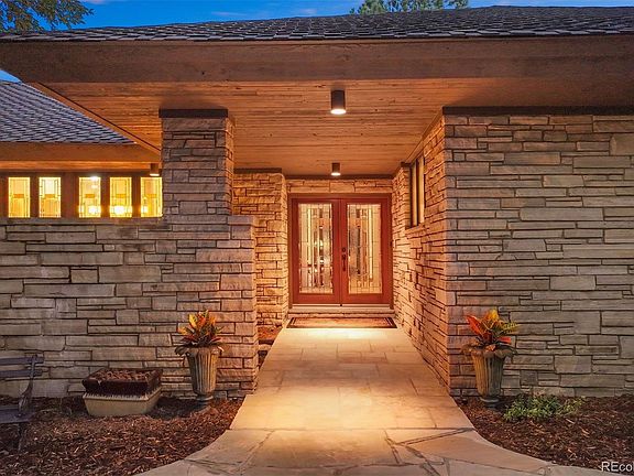 Please visit https://29CastlePinesDriveN.com for link to video. Discover timeless architectural importance in this incredible home located in the exclusive, gated community of the Village at Castle Pines. Inspired by the iconic Della Walker House in Carmel-by-the-Sea, this home features Frank Lloyd Wright signature stone and roof accents, seamlessly blending classic design with modern comforts. Nestled on one of the original estate lots, this property spans over 2 acres with over 100 Ponderosa Pine trees creating a private, park-like setting. Enjoy the convenience of being located just inside Gate 1 with quick, 5-minute access to I-25. The home was meticulously remodeled to the studs in 2007, with recent updates ensuring contemporary luxury and comfort. Just beyond the front foyer, the huge great room has soaring ceilings, beautiful woodwork, and stained glass that overlooks the peaceful Pines out toward the rear of the property. The West Wing provides a quiet Primary retreat with a designated deck and spacious Primary bathroom. The West Wing also provides a secondary main level en suite bedroom/bathroom and spacious office. The East Wing features the spacious Chefs kitchen, dining spaces, and hearth room. Upstairs is a private second office, yoga studio or art studio etc with a private deck. In the lower walk-out level, a spacious secondary Primary retreat with private entry and oversized spaces for comfort and kitchen access in the adjacent bar and entertaining areas. The lower East Wing features an additional bedroom/bathroom and laundry facilities. The lower-level recreational amenities flow seamlessly into the rear flat yard with stamped concrete patios, firepit, and soaring Ponderosa Pines and Gambel oak. The prestigious Village at Castle Pines neighborhood is known for its privacy, security, and amenities. Host of the 2024 BMW Championship, this community offers an unparalleled lifestyle. Contact me today to schedule a private tour!