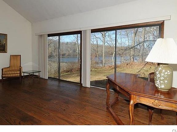 Fantastic W. Redding location! Desirable Chalburn!Open spaced contemporary with stunning lake views and sun-filled rooms! Built as a 2 bedroom with a 1st floor den. Large open kitchen leads to 2 story Great Room with stone fireplace. Generator! Close to Branchville and W. Redding trains. Caraluzzi's is just down the street! Storage above garage. Great potential. Currently 5 acres are town designated Open Space. Call agent for specifics. House being sold "As Is".