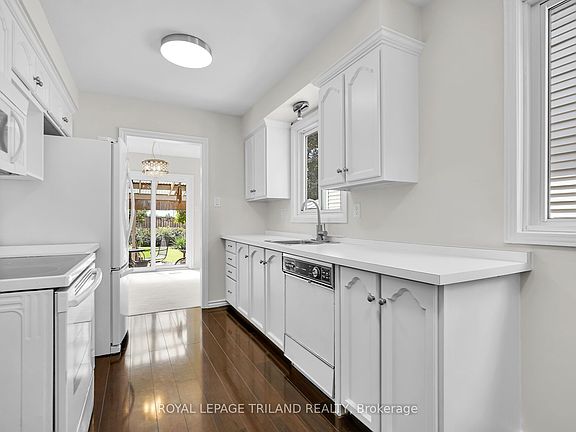 Looking for that perfect family home, close to White Oaks Mall and the 401? This is the home for you! This charming 3-bedroom, 2-bathroom, two-storey home is the perfect blend of comfort and convenience. Step inside and be greeted by a fresh, modern feel, thanks to the recent professional paint job and brand-new carpeting that extends on the main level and the second floor. You can see from the virtually staged photos that the bright layout is ideal for a growing family, offering a warm and inviting atmosphere.The main floor features a bright living area, with a sliding glass door to the covered outdoor patio, a functional kitchen, and a dining space perfect for family dinners. Upstairs, you'll find three generously sized bedrooms, including a bright and spacious primary bedroom. The single-car garage offers both parking and extra storage space. The driveway can fit 4 cars as well! Nestled in a prime location, this home offers unparalleled access to amenities. This is more than just a house; it's a place where memories are waiting to be made. Don't miss your chance to own this fantastic family home.
