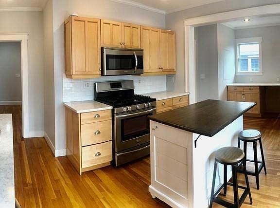 What a gem! Consider it a must-see to appreciate the contemporary concept of this 4 bed/2 bath 2-level condo, including a rare, oversized kitchen w/ plenty of counter & storage space, adorable built-ins, polished floors, recessed lighting, & cool tones of blue & gray throughout. Utilize the third floor as a master suite w/ sitting room or nursery, rec room, studio or guest suite. Unbeatable Belmont Center location adjacent to great local shops & restaurants, busses, & commuter rail, and more.