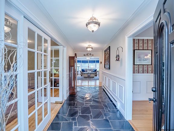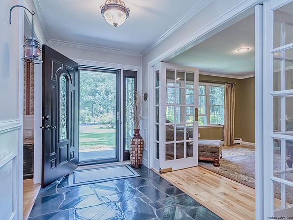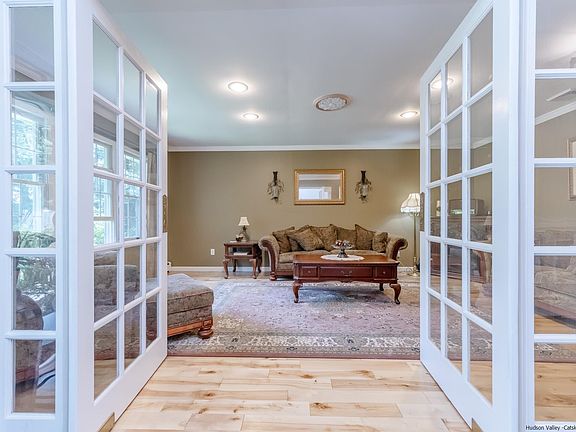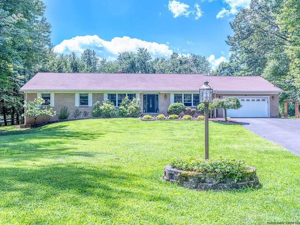 Presenting an opportunity to reside in the sought-after Hillside Acres community, this sprawling ranch-style residence is ideally situated at the end of a tranquil cul-de-sac, offering a harmonious blend of luxury and comfort on the cusp of Uptown Kingston. As you enter, the inviting slate-floored entryway beckons you into the heart of the home, leading seamlessly to the central living space. Here, a spacious family room awaits, complete with a wood-burning fireplace that sets a cozy and inviting ambiance. Sunlight shines through the expansive triple windows, creating an airy atmosphere that connects to the open-concept kitchen. This thoughtful layout allows for easy interaction and conversation while preparing meals. A few steps lead down to a bright dining nook, perfect for enjoying casual meals. The French doors on one side of the entry open to the living room, offering a quiet haven for relaxation. On the opposite side, a formal dining room awaits all those holiday gatherings and memorable dinners with family and friends. The space is further enhanced by the classic, custom details of decorative raised wall panels and crown moulding. This home offers four generously proportioned bedrooms. Among them, the primary en-suite complete with a walk-in closet.. The main bathroom features double sinks and a tastefully tiled tub shower. Practicality meets convenience with a two-car garage that opens effortlessly to a mud/laundry room, streamlining daily routines. Entertaining options abound with approximately 1200 additional square feet of finished space in the lower level, perfect for hosting movie nights and friendly game gatherings. For those with a penchant for DIY projects, the unfinished portion of the basement unveils a dream workshop, while ample storage space accommodates your every need. Enjoy easy outdoor living on the screened-in porch, just off the kitchen, or on the patio that overlooks the expansive backyard. This outdoor oasis presents endless possibilities, from hosting summer barbecues to envisioning the installation of an in-ground pool. The sprawling space offers ample room for both recreation and gardening endeavors. Contact us today to schedule your exclusive tour and experience this exceptional property for yourself.