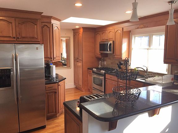De-leaded spacious apartment is on the top two floors of a renovated large two-family house. 10 rooms total with 2000 sqft of living space with the following features: Hardwood floors throughout 2nd floor and carpeting on the 3rd. Two zone tenant-controlled central forced hot-air and AC. Brand new double-pane energy-efficient windows with honeycomb blinds throughout the unit. Two renovated full bathrooms with gorgeous Italian-style tile work and granite-top vanities. Three equally large bedrooms on the second floor and a bright primary suite and office with skylights, blinds, full bath, a walking closet and lots more closet space on the 3rd floor. Large landscaped yard to make BBQ, relax and enjoy; perfect for children to play and have fun. The renovated open-concept kitchen features high-end cabinets and granite countertop with a double sink, skylight, recessed lighting, and stainless steel appliances. In-unit washer/dryer. Spacious dining and living rooms with detailed wood work. Bright living room with recessed lighting and pre-wired for TV and 5.1 surround-sound entertainment system. Gorgeous sun room to double as an office/playroom/reading room etc. All bedrooms, sun room, office, and living room wired for cable and internet. 1 spacious garage and 3 tandem parking spots on driveway for each unit. Storage space available in the basement. Premium Location: Located in the sought-after Jason Heights neighborhood. Walking distance to Whole Foods, Stop & Shop, CVS, brand-new Arlington High School, Arlington Center famous for its variety of shops and restaurants. For recreation, close to Minuteman Bikeway, two parks, Spy Pond for picnicking and kayaking. Convenient access to MBTA bus lines 67,77,79,80,87,350. Short drive to Route 2, Alewife (Red Line T-Stop), I-93, I-95 (Route 128). Proximity to the upscale Burlington Mall, Wegmans and Trader Joe's, Assembly Row outlet shops, and Watertown Mall. Available March 1st. Non-smoking. No pets. No fee. 1st month's rent, security deposit & references required. Tenant pays for gas and electric. Water included in rent.