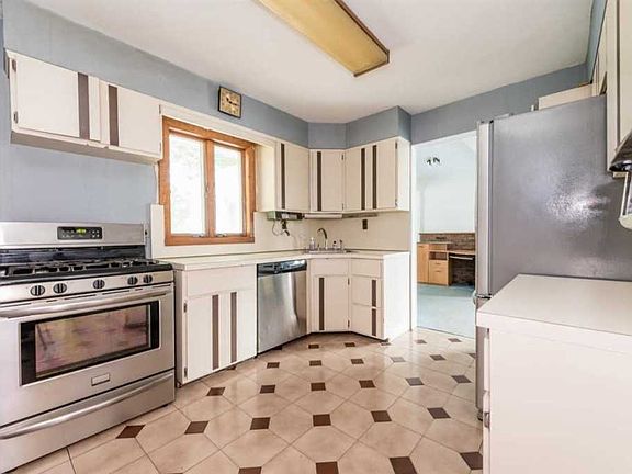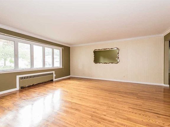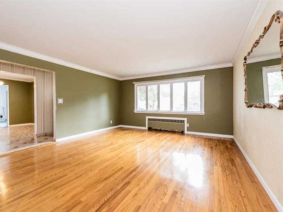 Expanded 3 bedroom ranch home with very spacious rooms and excellent layout for possible multi-generational living. Update energy efficient gas heating with cast iron baseboard hot water heat and separate hot water heater. Bright interior/plentiful windows, hw oak flooring, crown molding in dining & living rooms, 40x12 ft den/office (converted garage)/potential for 4th bedroom, ample double closet in storage in master bedroom, updated stainless steel appliances. Rear OSE to basement with 2nd full bath and extra fridge - Pavement pitched away from house for dry basement. Corner property with circular driveway, level fully fenced yard, and storage shed. Basic Star rebate - 903.66
