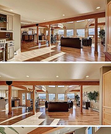 - MAIN FLOOR: Kitchen, Living Room, Den/Office/Library