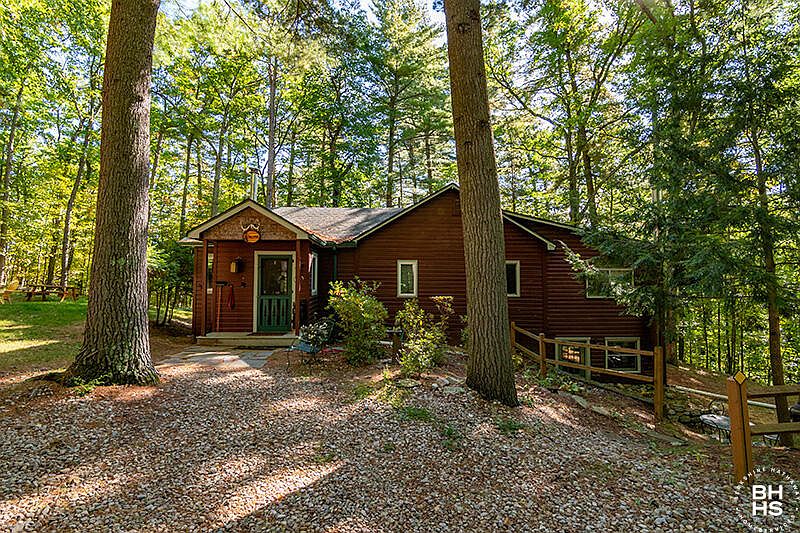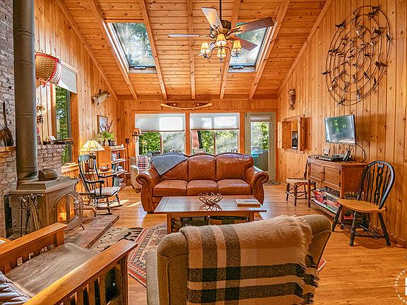 This charming home is the perfect vacation getaway, year round home or vacation rental. With a cozy wood stove, hardwood flooring, cathedral ceiling, granite kitchen countertops, spacious lot, and deeded access to Augur Lake, you'll never want to leave. The home offers one floor living with extra finished space on the lower walkout level currently used as a third bedroom with sitting area and half bath. Enjoy the outside deck, firepit or take a walk to the small shared dock on the edge of the lake. Don't miss the opportunity to own this great home.