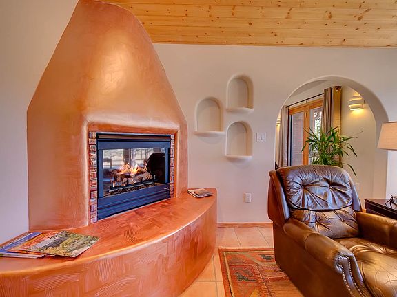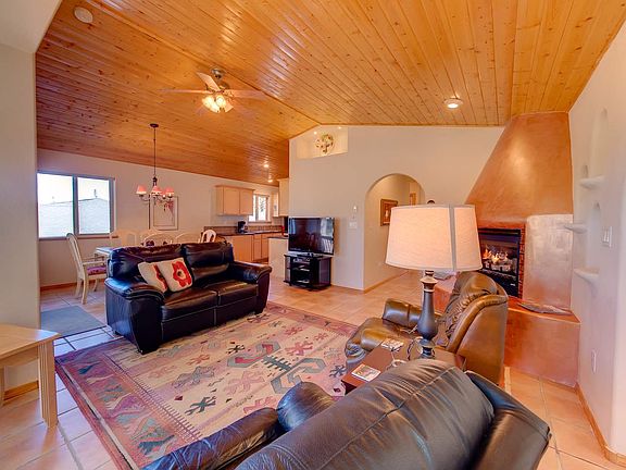 Are you looking for low maintenance, single level living right on the Angel Fire Resort Golf Course? If so, then this townhome is for you! Enjoy mountain and golf course views in this well maintained townhome that feels private due to the mature trees that surround the home's two back decks and patio. Inside you'll find a very well maintained home with radiant floor heating throughout. The open concept great room has vaulted wood ceilings, Saltillo tile flooring, arched doorways, many art nooks and a gas burning Kiva fireplace. A sunny office space with a private deck is on one side of the great room while the dining area and kitchen sits off to the other side. The kitchen features tile flooring, granite countertops and new stainless steel appliances. The townhouse also has a full bathroom with tub, a guest bedroom, spacious laundry room and a true master suite. The master suite has a walk-in closet and ensuite bath featuring a tile shower with glass door. This townhome is also within walking distance to Angel Fire Resort's Country Club, with access to restaurants, workout facility, retail store and a pool! The home comes mostly furnished and is move-in ready!