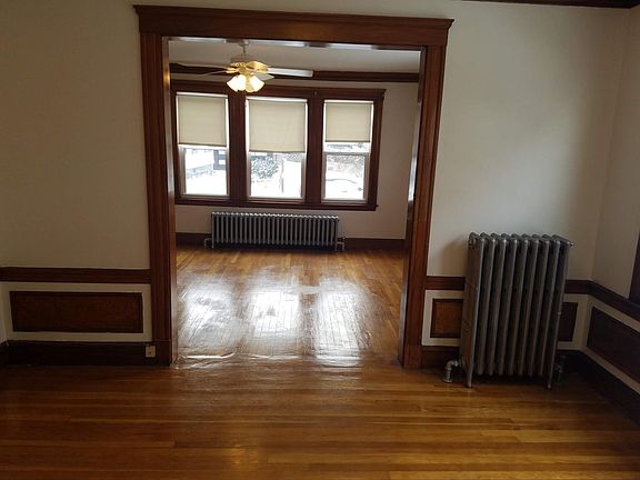 Spacious 2 bedroom with hardwood floors throughout. Living room, dining room with built in china cabinet, eat in kitchen with large pantry and rear enclosed porch. There is additional storage in the basement and laundry hook ups. Tenants are responsible for utilities
