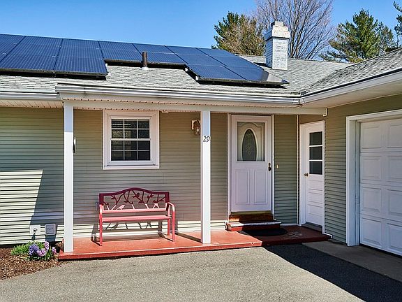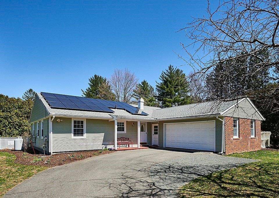 Buyers, the work is done! All you need to do is to move into this largely renovated and lovingly maintained, 3 bedroom, 2 bath, 2-car garage, Ranch. Tucked away on cul-de-sac, you are 5-10 mins. from Amherst Center, Wildwood Elem., Amherst Reg. Sec. Schools & UMASS. Many improvements enhance comfort and energy efficiencies: owned 6.75 kW solar array (2014) with 2 more yrs. of SRECS; dual fuel heat/AC pump system (2022) to save on oil; Mass Save added insulation & air sealed, replacement windows etc. The spacious kitchen was remodeled w/ SS appliances, abundant cabinetry w/ peninsula, Corian & upgraded countertops. An adjoining dining area has slider to 16' x 20' ft. Treks deck with hot tub. The yard is private w/ perimeter of arbor vitae & w/ flat open space for summer fun, + blueberry patch. The main bedroom unifies 2 spaces, has 3 closets & touts modern 3/4 bath w/radiant floor heat under tiled floor just like the 2nd tastefully remodeled 3/4 bath. Entire garage was rehabbed.