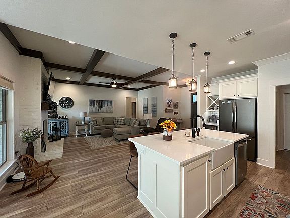 Custom built home located behind Springhill elementary school in Huntington Estates subdivision. Home features 4 bedrooms, 3 full bathrooms, open concept living area that is great for entertaining, LVT flooring in main living area and master bedroom with carpet in spare bedrooms, quartz countertops, large pantry, and stainless steel appliances. Also has a gas fire place, nice size back patio and fenced in level yard.