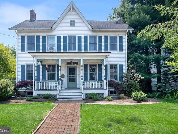 Experience the essence of summer while relaxing on the patio, the expansive rear screened porch, or the covered front porch of this exceptional home situated in the heart of Hopewell Borough. Every convenience is easily accessible. The interior boasts wide-board wood floors and modern, paned windows that appear original, adding to the home's inviting ambiance. In the updated kitchen, stainless-steel appliances complement the bright white cabinetry. The home's unique charm is enhanced by whimsical paint colors that add to the character. A gas fireplace creates a cozy atmosphere in the living room, and the dining room boasts a wall of built-ins for displaying all your treasures. A large, renovated powder room completes the first floor. Three bright, roomy bedrooms with wood floors utilize a two-room bathroom upstairs, providing ample space for morning routines. The exterior was recently painted. Restaurants, shops, and the farm market are sidewalks away, and this delightful town is just a short ride to Princeton.