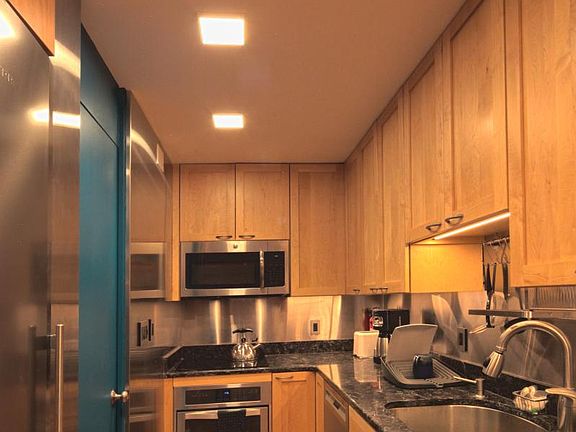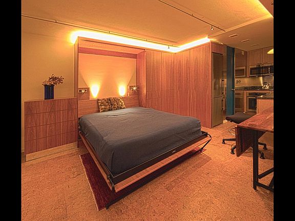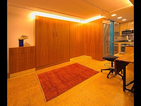 Newly renovated, modern, fully furnished studio apartment just outside Harvard Square in a well managed condo association building at 29 Concord Avenue. The building was designed by famed architect, Hugh Stubbins, Jr. in 1965. This sun-filled, treetop studio is on the 5th floor with a private balcony and a magnificent view. Building amenities include an 8-story atrium, an elevator, private storage, and common laundry. 10 minute walk to the Harvard Square red line MBTA, surrounded by Harvard University, and a very short distance to the Longy School of Music, and the Cambridge Common. The location is rated as "Very Walkable," a "Biker's Paradise," and "Excellent Transit" by walkscore.com. A constant comfort / whisper quiet Mitsubishi mini split air conditioning was installed in 2017. The following were all installed in 2015: All new furniture and kitchen appliances, including a Wolf induction cooktop, a Whirlpool built-in oven, a Liebherr refrigerator, a whisper silent Bosch dishwasher, and a microwave. The furniture includes an Eames designed coffee table, Hans Wegner designed chairs, a beautifully grained acacia wood dining table. a deliciously comfortable white leather sofa, a 43" flat screen TV, and a custom built Murphy Bed with Sealy's premium top of the line queen sized mattress that disappears with ease into a custom made cherry wall cabinet. The bathroom is enveloped in beautiful floor to ceiling tile. The balcony window is graced with Hunter Douglas soft drapery like vertical blinds. It gets its electricity through a 100% Green Renewable Energy program. It also includes Linens, Towels, Fully Stocked Kitchen (Coffee Pot, Toaster, Pots, Pans, Dishes, Glassware, Cups, Silverware, etc) and Twice Monthly Cleaning Service. See a walk through video: https youtu.be/LIPIxaxZ-BU
