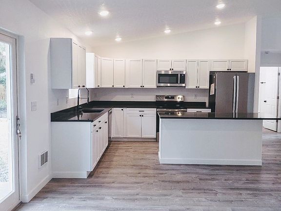 1768 St ft of Brand spankin' new construction!! ~ MOVE IN READY!! Combining the ease of single level living with no levels of steps to contend with along with an ample sized 3/4 acre lot, there is plenty of room to establish a garden area, herb garden and more! Landscaping includes leveled seeded lawn area around the home, and decorative rock around the house. Some of the quality features of this build include 200 amp service, zone heating, 2x6 exterior walls w/ 2x4 and 2x6 interior walls, a metal roof and 16'x7' insulated garage door w/opener. Inside this new build will be luxury vinyl plank flooring throughout, a range/oven, dishwasher, fridge and over the range built in microwave! Kitchen boasts white shaker style frameless cabinets with hardwood dovetailed soft close drawers and doors! Cook in style on quartz countertops! With enough room for all, this modern concept home can be yours today, ready to start making memories in!