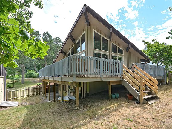 Don't miss out on this truly awesome opportunity to make this beautifully maintained year round, open concept contemporary home YOURS! Great as a year round residence or a seasonal getaway. It is a GEM! Character & uniqueness...all wrapped up in a well built, updated, well maintained & much loved family home! Soaring, beamed ceilings w/ beautiful redwood walls, wide pine wood floors make the open concept first floor space both cozy & inviting! Plenty of soaring Anderson insulated windows let in natural light & allow you to enjoy nature year round from the comfort of your living room. Fall is spectacular! Wrap around deck is perfect to relax on & for all your entertainment needs. The Primary Bedroom added in 2012, has a full bath, hardwoods, great windows as well as a slider to that great deck! Full basement below addition has sub-panel, washer, dryer & tons of storage. Second full bath is in the lower level, along w/ two bedrooms & a bonus room. Paver patio, leads from the lower level, to the yard, shed, & back basement. Close to Mashpee Commons, Stores, Restaurants, Schools & Recreation...This is THE ONE!! Welcome Home!!