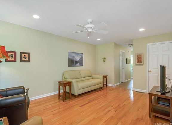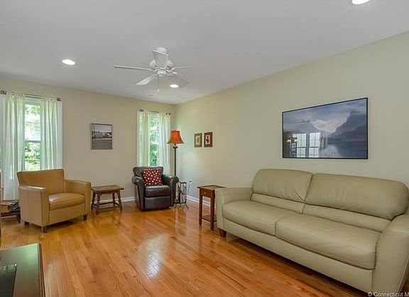 Don't miss this open, bright and meticulously maintained end unit townhouse. This pristine 2 bedroom, 2.5 bathroom condo features an attached garage, front porch, hardwood floors throughout, central air conditioning, Peachtree windows, eat-in kitchen with maple cabinets, under cab lighting, center island with breakfast bar and a half bathroom off the formal living room. The second level features a large master bedroom suite with a full bathroom and walk-in closet, a generously sized second bedroom, a conveniently located laundry room and an oversized guest full bathroom. Your finishing touches could turn the unfinished lower level into an ideal family room. Enjoy afternoon sun on your private deck facing a lightly wooded area; truly a bird lovers paradise! Just minutes from Portland Village, RT 9, shops, Brownstone Exploration & Discovery Park and Connecticut River walks.