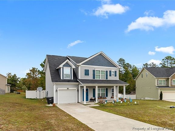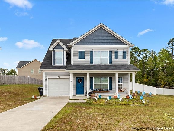 Super cute two-story home, built in 2016, in the popular Lexington Plantation community. Downstairs, the open floor and numerous windows make the first floor feel open and bright. The kitchen includes granite countertops, a tile backsplash, stainless steel appliances, a large island with bar seating, and a large pantry. The primary bedroom is spacious and includes a walk-in closet. One of the secondary bedrooms is oversized with two closets and a dormer window, great for a reading nook. Other great features include a front porch, one car garage, back patio, fire pit, and brand-new carpet upstairs. Your new home is only 25 minutes to Ft Liberty/Bragg.