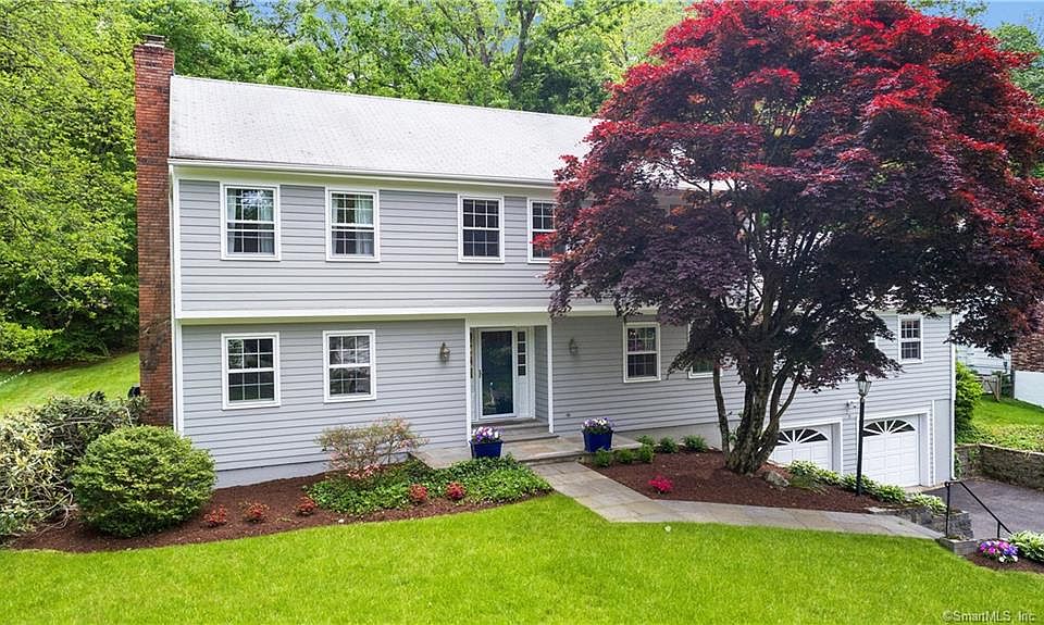 Can you hear that? Opportunity is knocking on the door of this darling center hall colonial located on a desirable cul de sac in the Ox Ridge School District! This one checks all the boxes including 4 beds/ 2.5 baths, 0.5 acres, 2-car garage, hardwood floors, chef's kitchen & enclosed porch to enjoy all year round! The main floor is made to entertain gather for drinks in the living room w/ an exposed brick fireplace, dine in the separate formal dining room, or cozy up to a good movie w/ popcorn & friends in the family room near your 2nd fireplace! At the heart of the floor plan is the updated kitchen w/ custom cabinets, an eat-in island, stainless steel Thermador appliances, a beautiful bay window over a nice size sink, & a breakfast nook overlooking sliding doors w/ views of the deck & backyard! Work from home? Why not use the light-filled sunroom! Guests use the downstairs bedroom across from the half bath! The second floor offers 2 well-appointed bedrooms, a recently updated bathroom w/ double vanity, large primary en-suite w/ soaking tub, walk-in shower & closet! This floor plan offers flexibility & room to expand, don't miss the partially finished basement awaiting your vision perfect for a game room or gym! Close to trains, shopping, & town beaches. Waveny Park less than 5 minutes away, all only 55 mins to NYC!