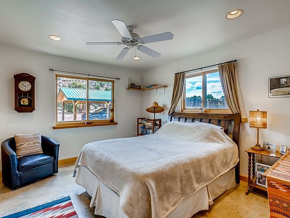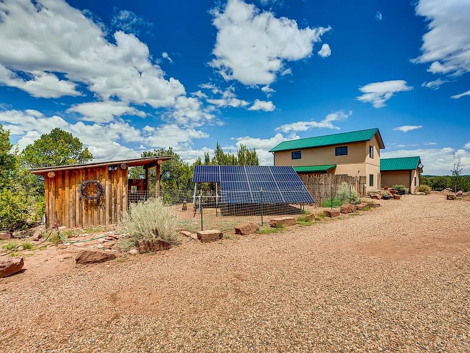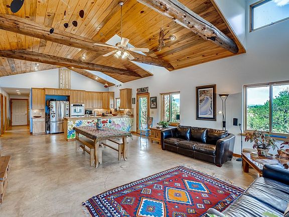 Destination horse property located just outside Historic Ribera offers much for folks seeking privacy and the best of rural living. The built in 2007 inviting two-story home has 3 bedrooms, 3 full baths, open concept living/dining/kitchen, state of the art photovoltaic systems, large deck with views of Rowe Mesa & Sangre de Cristo mountains and landscaped entry. The listing includes 2 legal lots of record, 5 acres for the home and the adjoining 35 acres, 24' X 24' barn with 24' X 12' inside paddock, large carport and the property is fenced & crossed fenced with several smaller paddocks. Additional features include new in 2019 metal roof on the home as well as the barn, Rain water catchment around the house, Fiber optic cable providing fast internet, high efficiency Jotul wood stove, water softener, reverse osmosis, and oversize pressure tank from private well. Also included a large deluxe chicken coop, coyote fenced side yard with doggie door, three seasonal catchment ponds with small spring and large cottonwood trees. Don't miss this very special offering 45 minutes from Santa Fe, 30 minutes from Las Vegas.
