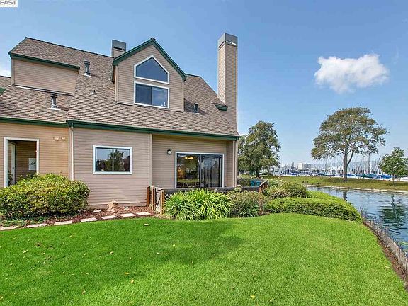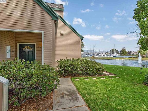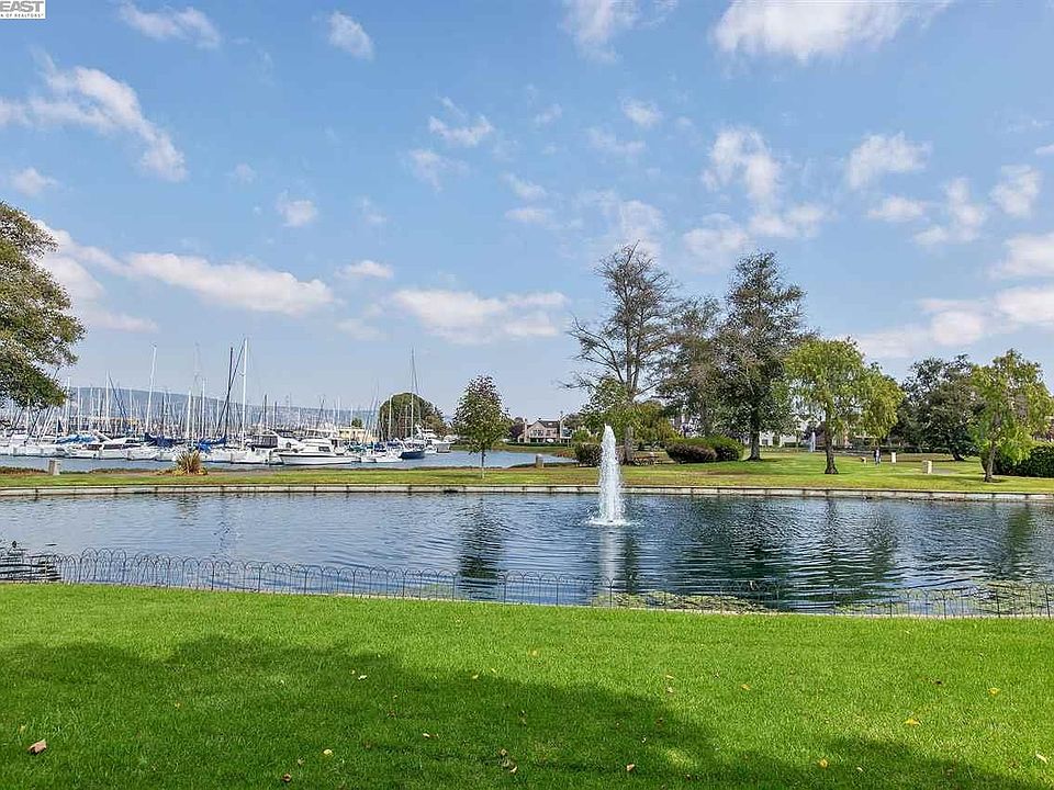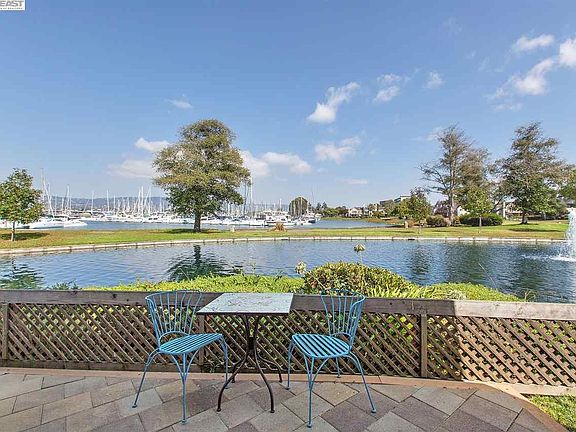 This captivating 2 bed/2 bath ground level condo is undeniably one of the best locations in Marina Village. Enjoy a breathtaking wrap around view of the marina, water, park and the Oakland Hills from every window. 9â ceilings, crown moldings throughout, bamboo flooring, custom bookshelf in living room, gas burning fireplace, beautifully updated kitchen with custom cabinetry with soft close drawers and granite countertops, one car attached garage, pavers in the back patio that overlooks the marina and water and so much more AND a convenient walk to pool/spa, shopping center, restaurants, transportation and marina.