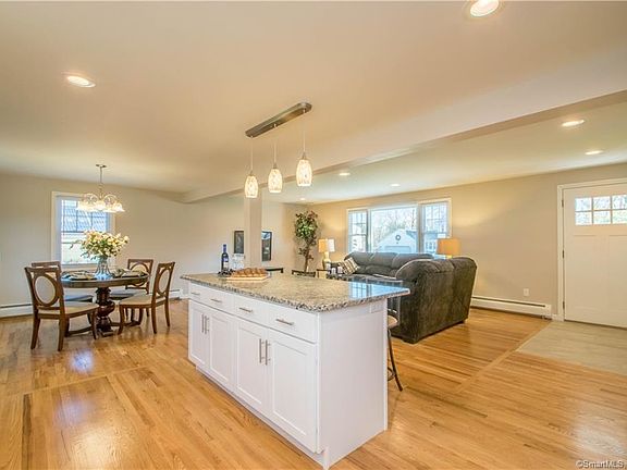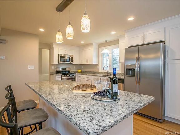 AN ABSOLUTE STUNNER! Welcome home to this drop dead gorgeous Colonial, located on a quiet Cul-de-sac with easy access to I-91. Spacious open floor plan, designer kitchen with brand new kitchen cabinets, new granite counter tops, brand new stainless steel appliances, and a large island with seating. The home features both a large family room and a living room with a fireplace on the main floor. Both the main level and 2nd floor have newly finished hardwood floors throughout. Tile in the bathrooms and entry ways is also brand new, as are all of the light and plumbing fixtures. The washer/dryer are located on the main level, in the half bath. Upstairs the master bedroom has a walk-in closet, and all new master bathroom with a tiled shower, glass door, and new vanity. Home has 4 very nicely sized bedrooms upstairs, and a bath with tub/shower off the hallway. Professional landscaping, a level and private back yard, help make this home an ideal choice. The basement is clean and bright, with hatchway access to the back yard and newer gas fired boiler and water heater. Priced to sell now. HURRY! This one won't last long.