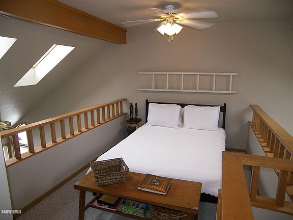 The Creekwood area is away from the bustle. A view of the 11th green on the South golf course. Upper level has one bedroom, loft for reading (or an additional sleeper/sofa) and a bath. The main floor has a kitchen, living room, dining space, bedroom, bath and laundry room. Pretty view out the back. Living room furniture and TV are new.