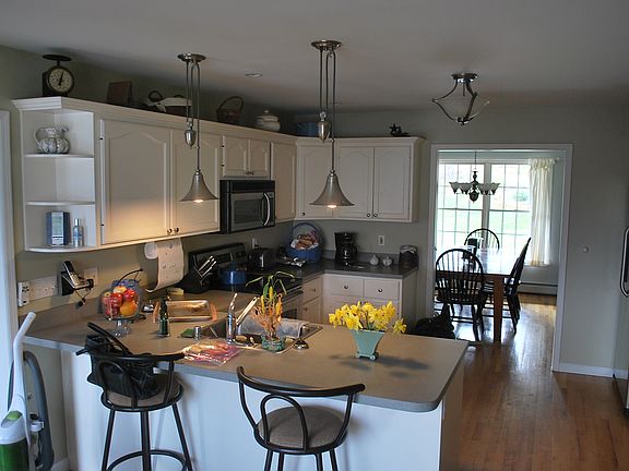 WOODS AT DUCK HARBOR ~ LIKE NEW RAMBLING RANCHER ~ Spacious 3 bedroom, 2.5 bath home in desirable location nestled on 5 acre choice parcel. Open and airy floor plan features: living room with fireplace, formal dining room, eat in country kitchen with bar, hardwood floors, cathedral ceilings, 2.5 car attached garage, zoned heating system, porch and deck with great views!! Walking distance to Lake for boating. A must see!!